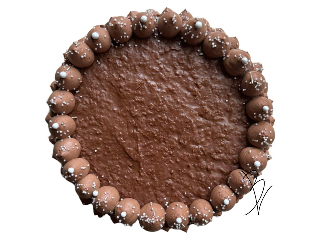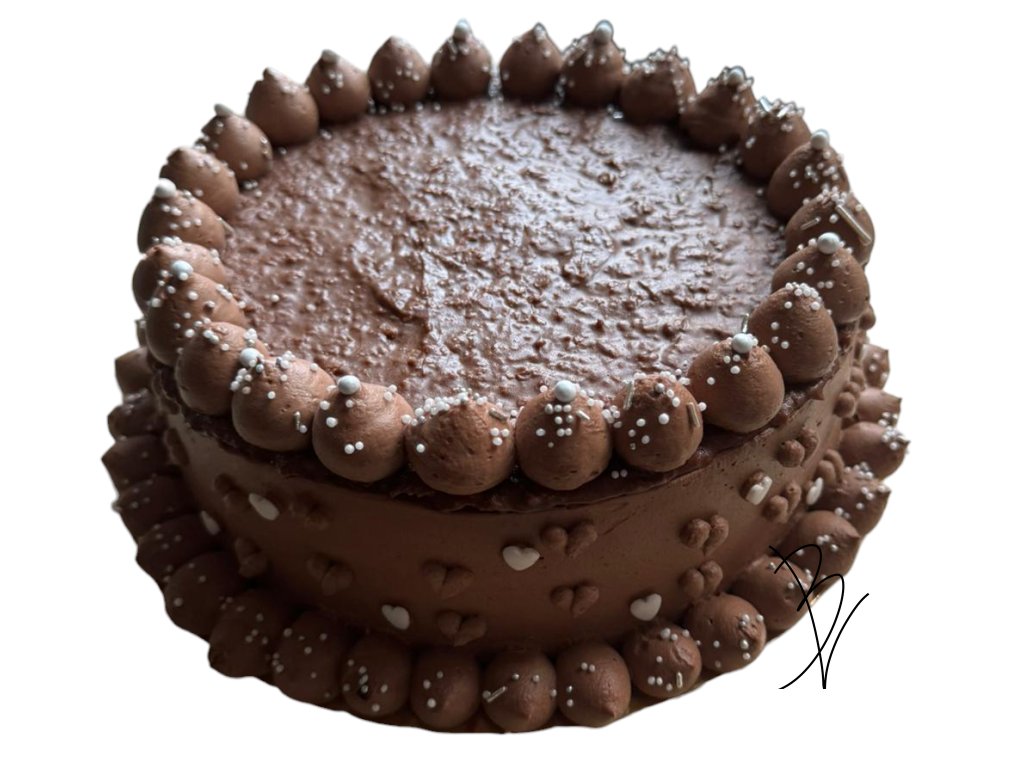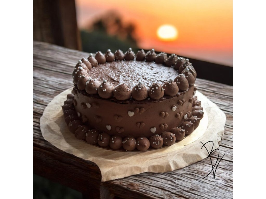Tento nádherný čokoládový dort se slaným karamelem je dokonalým dezertem pro každou příležitost. Dort je bohatě zdobený krémem z tmavé čokolády, který je na povrchu hladký a lesklý, a obklopený delikátními čokoládovými srdíčky po obvodu a na horním zdobení posypaný bílými perličkami. Uvnitř se skrývá lahodná vrstva slaného karamelu, která perfektně vyvažuje sladkost čokolády a dodává dortu jedinečnou chuťovou dimenzi. Každý kousek tohoto dortu je opravdovým zážitkem pro chuťové buňky, který potěší každého milovníka módních sladkostí.