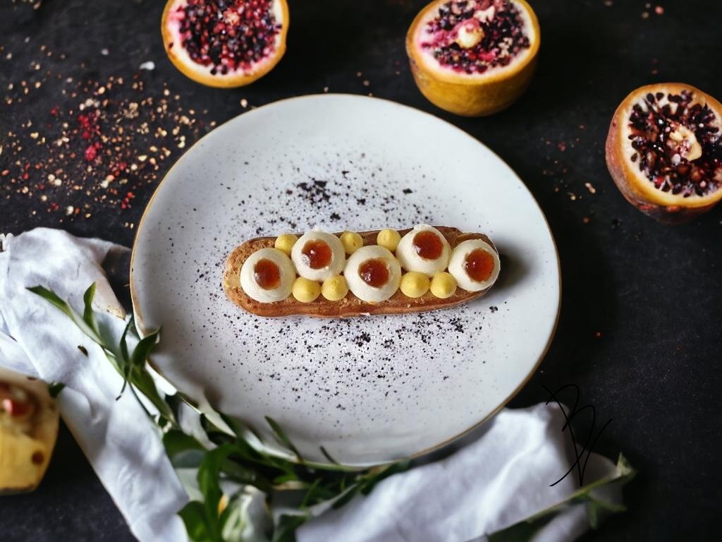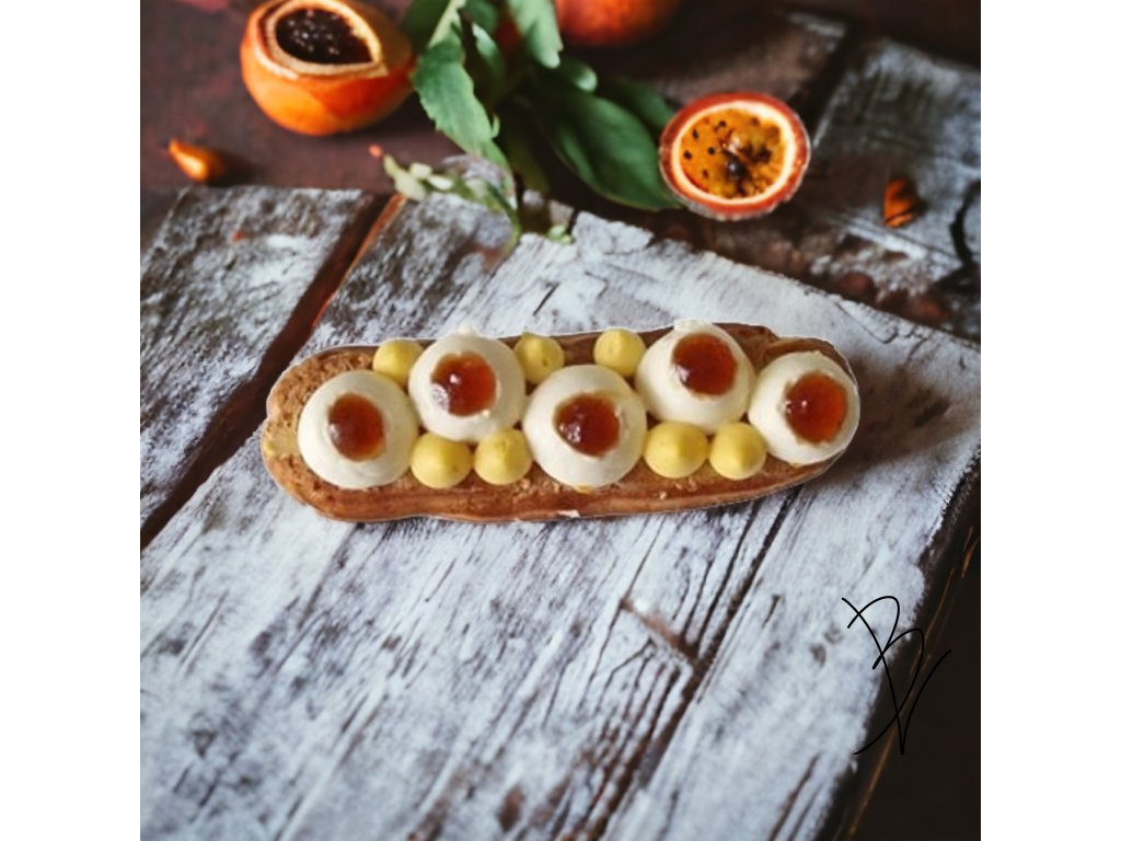 Tuto verzi Eclair (jeho nejhezčí verze byla bohužel snězena dlouho před pořízením této fotografie) jsem upekla pro posezení s přáteli. Vzpomněla jsem si na variantu, kterou jsem se naučila v kurzech u paní Heleny Flégrové a skládá se z: