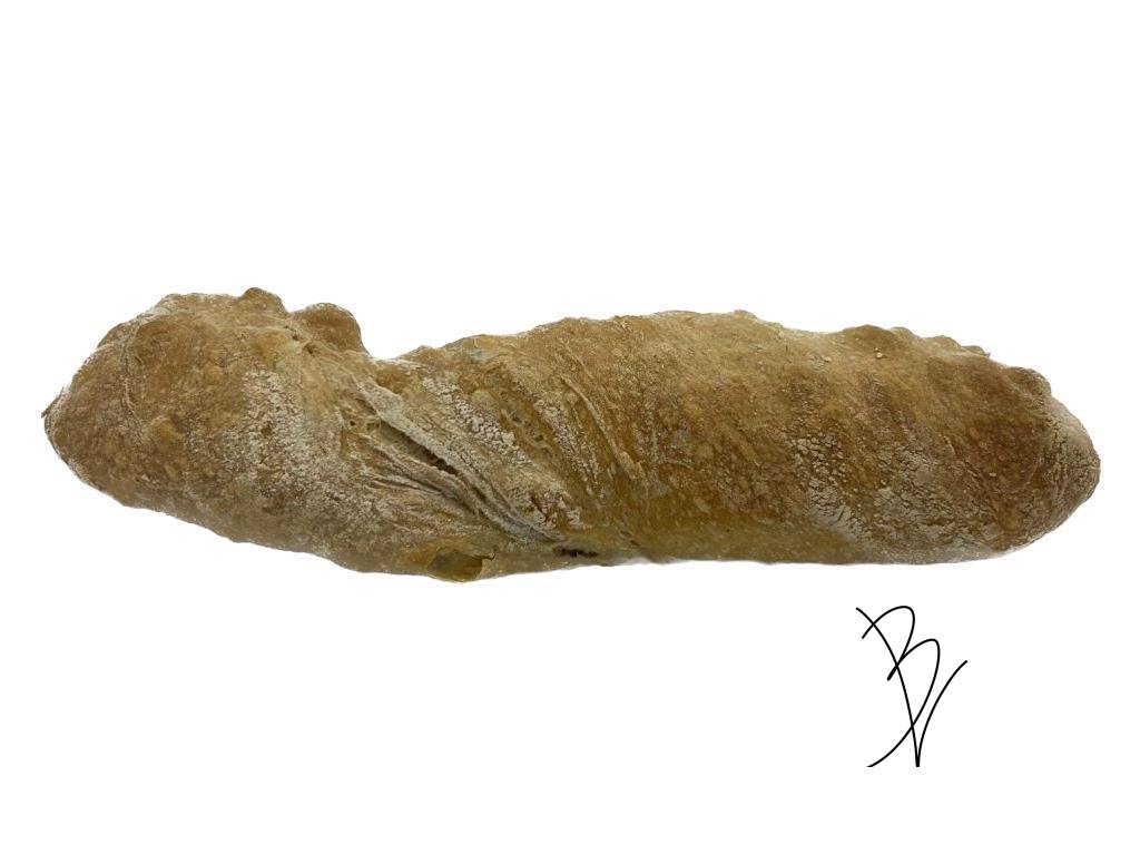 Italské pečivo Ciabatta cca 250 gr ve tvaru rustikální kratší bagety s rozličnou náplní dle Vašeho přání.